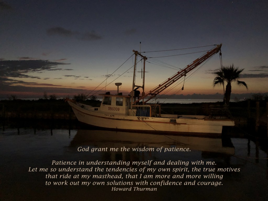 Photo taken this past week, sunrise in San Leon, Texas. Text from Howard Thurman’s Meditations of the Heart.