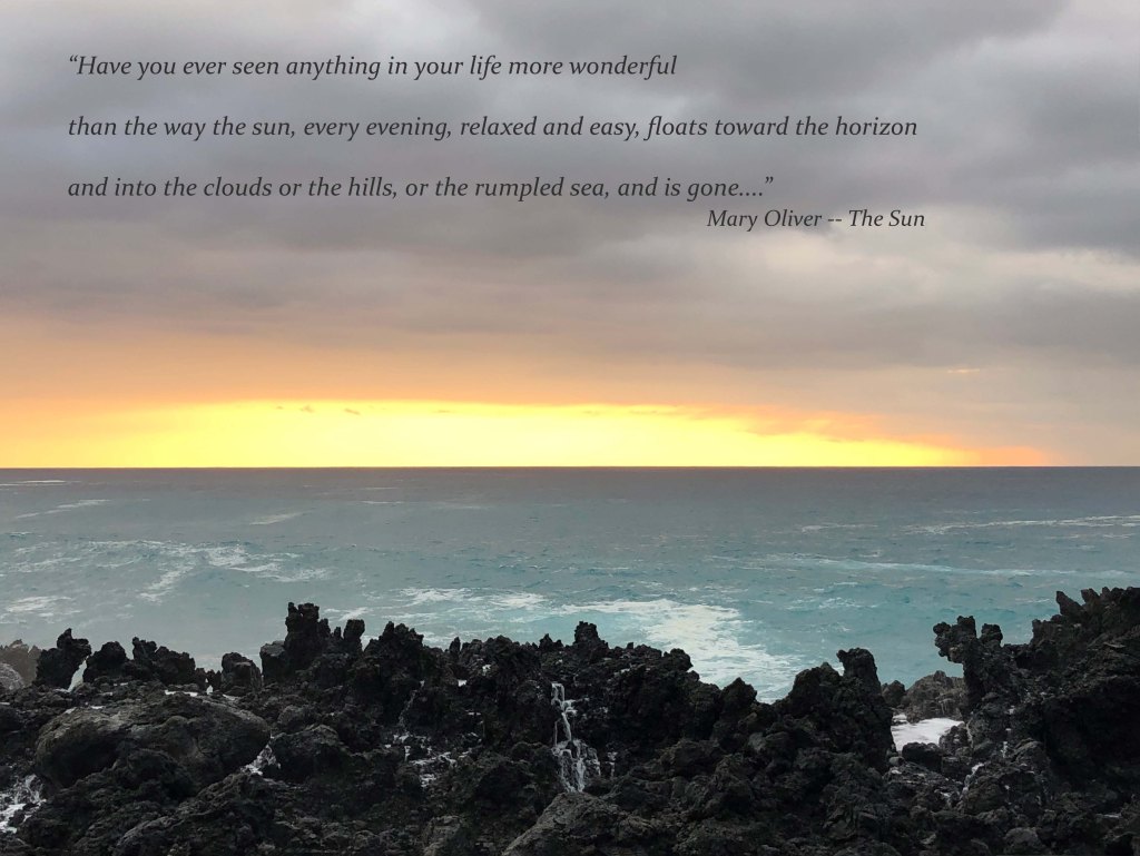 Photo and Text Sunday Posted on July 3, 2022 Photo taken in Kona early this year. Poem excerpt from Mary Oliver. Share this: Click to share on X (Opens in new window) X Click to share on Facebook (Opens in new window) Facebook Like Loading... Related