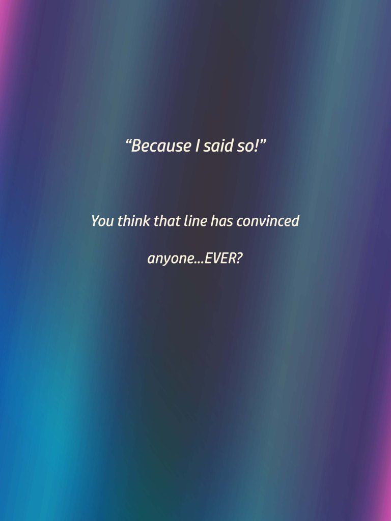 Riding my bike along Seawall in Galveston today I heard an exasperated parent use this line with one of his kids. I am sure I used it long ago with my kids, but the absurdity of the line (its hubris and illogic, among other points) hit me today as I heard it.