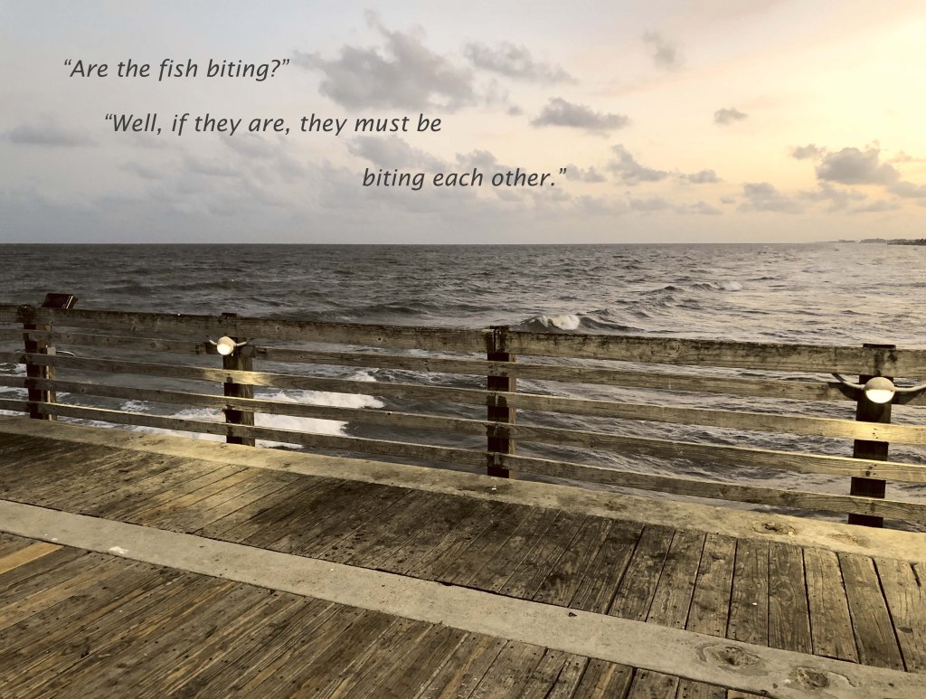 Sentiment and photo from a recent fishing trip on this Galveston pier. Or as I have heard — The fishin’ is good, it’s the catching that is the problem.
