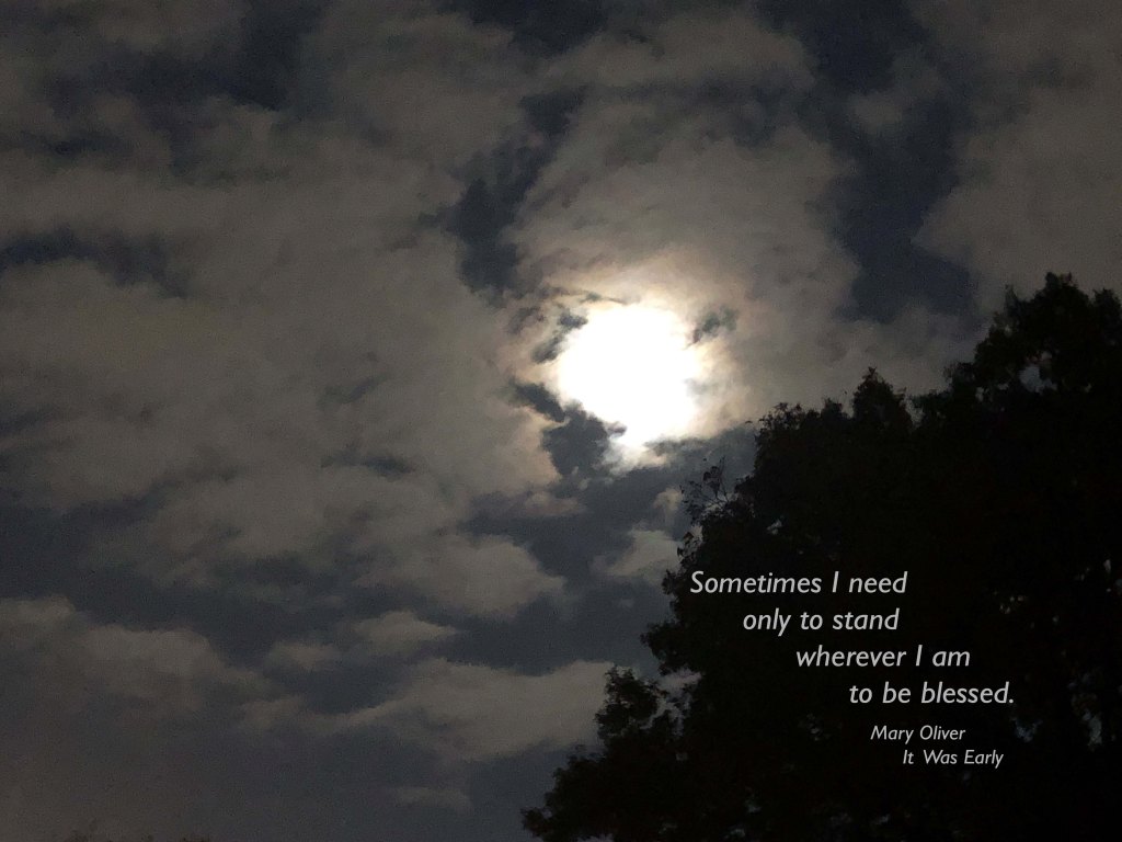 Photo taken during the most recent full moon. Text from the Mary Oliver poem – It Was Early