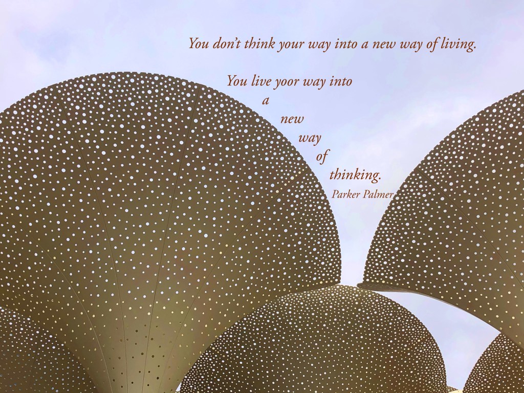 Photo taken of the outdoor sculpture at the newly rennovated grounds outside the Blanton Museum in Austin. Text from Parker J. Palmer on The Growing Edge podcast.